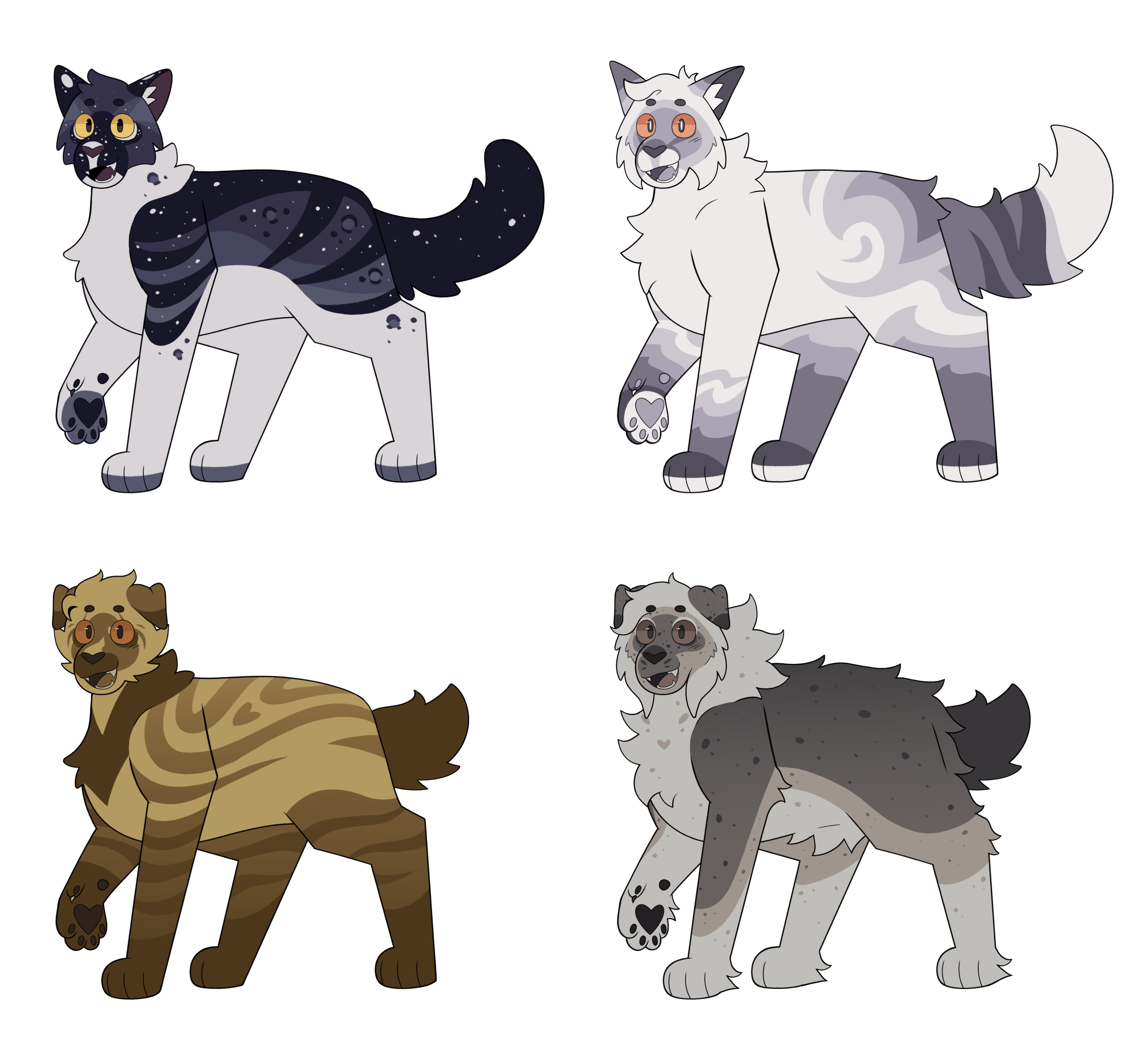 Ferals only!!£25 - £50 depending on complexity£25 - Basic Reference Sheet; includes a fullbody, close ups of paws and mouth, colour palette and basic info.