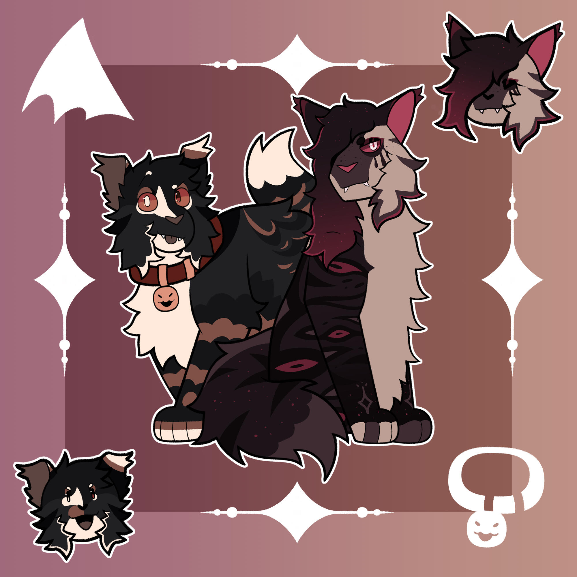 Ferals:£25 - Basic Character Page; includes a fullbody, two headshots, and props / decoration in the backgroundAnthros / Humans:£30 - Basic Character Page; includes a fullbody, two headshots, and props / decoration in the background
