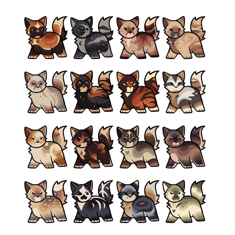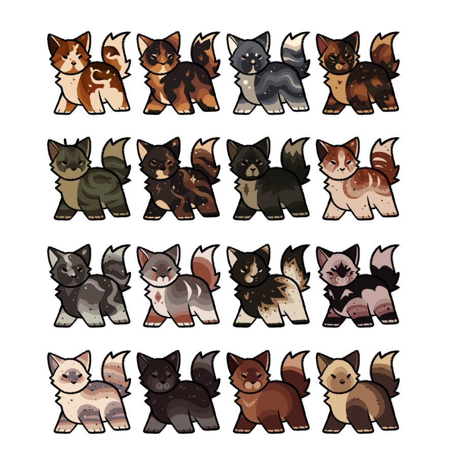 Please provide a description / moodboard for the custom design (such as pelt pattern, colour palette, and fur texture if applicable). Optionally, you can mention personality traits / other features and I'll craft the design based on them. I can also provide my own take on their personality if you'd prefer.Redesigns are also available!! Same rules apply, just provide the original design along with the details!!
